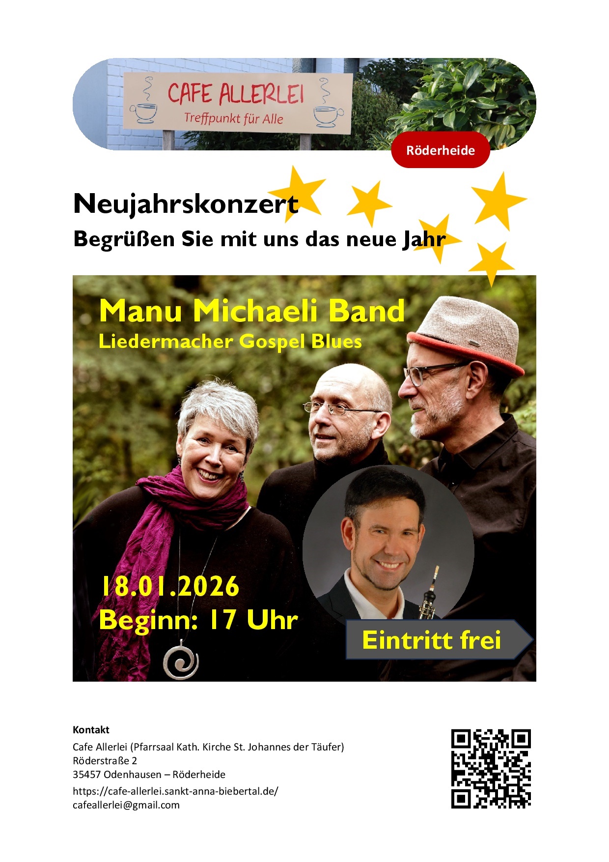 Cafe Allerlei Programm Neujahrskonzert Teresa Foschini Neujahrskonzert Teresa Foschini Lesezeichen hinzufügen ausdrucken teilen Kontakt Cafe Allerlei Nachbarschaftsprojekt Kontaktinformationen Röderst